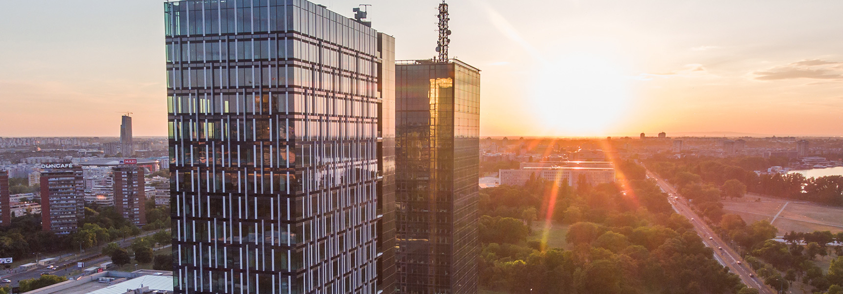 Ušće Tower Two is a modern, prestigious, luxury office building, offering A+ quality work space. The building is 103.9 m high, matching the existing landmark building Ušće Tower One. Along with the new tower, a twolevel underground car park has been constructed with 750 parking spaces, serving both towers. The total GBA is 55,000 sqm which comprises 27,400 sqm of office space and 27,600 sqm of parking space.